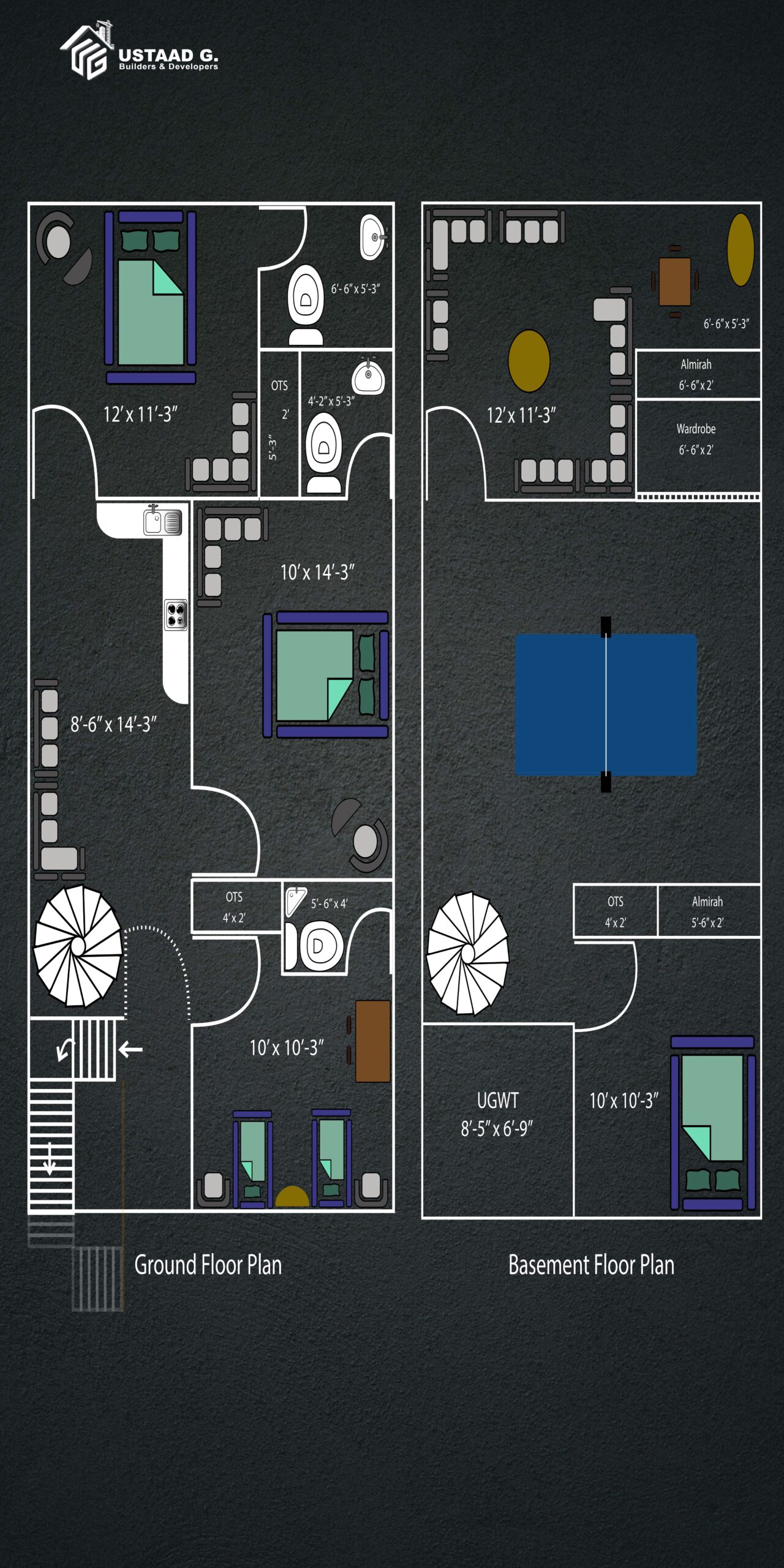 Ground floor comes with Basement floor. The Ground Floor is 800 Sq. Ft. The Basement Floor 700 Sq. Ft.